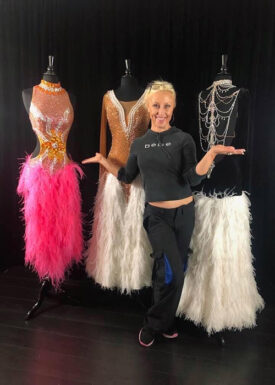 Combining Julia’s creative designs and Natalia’s skillful dressmaking allows Artistry In Motion to be known for their unique designs and quality work. Artistry in Motion dresses are designed to make YOU stand out on the competition floor! The fabrics are shipped from New York, Los Angeles or imported from Austria and England. They are high-quality, luxury fabrics specifically used to fulfill Ballroom dancing needs. They proudly use high quality crystals to embellish their one-of-a-kind dresses into a true work of art.